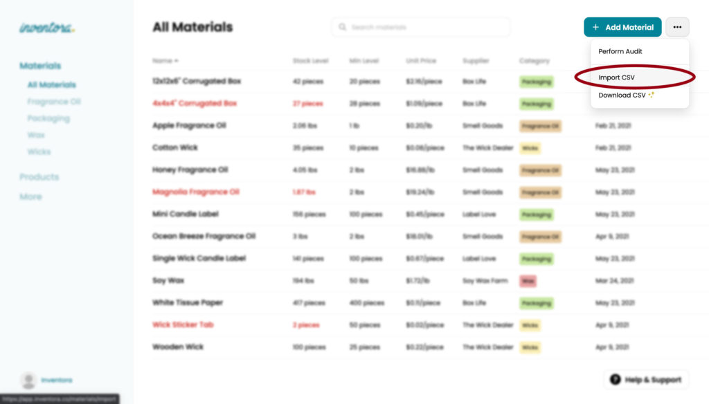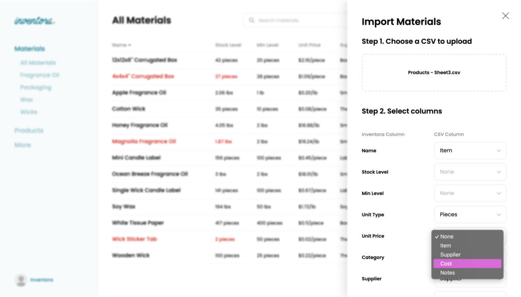 Upload a CSV for Your Inventora Materials