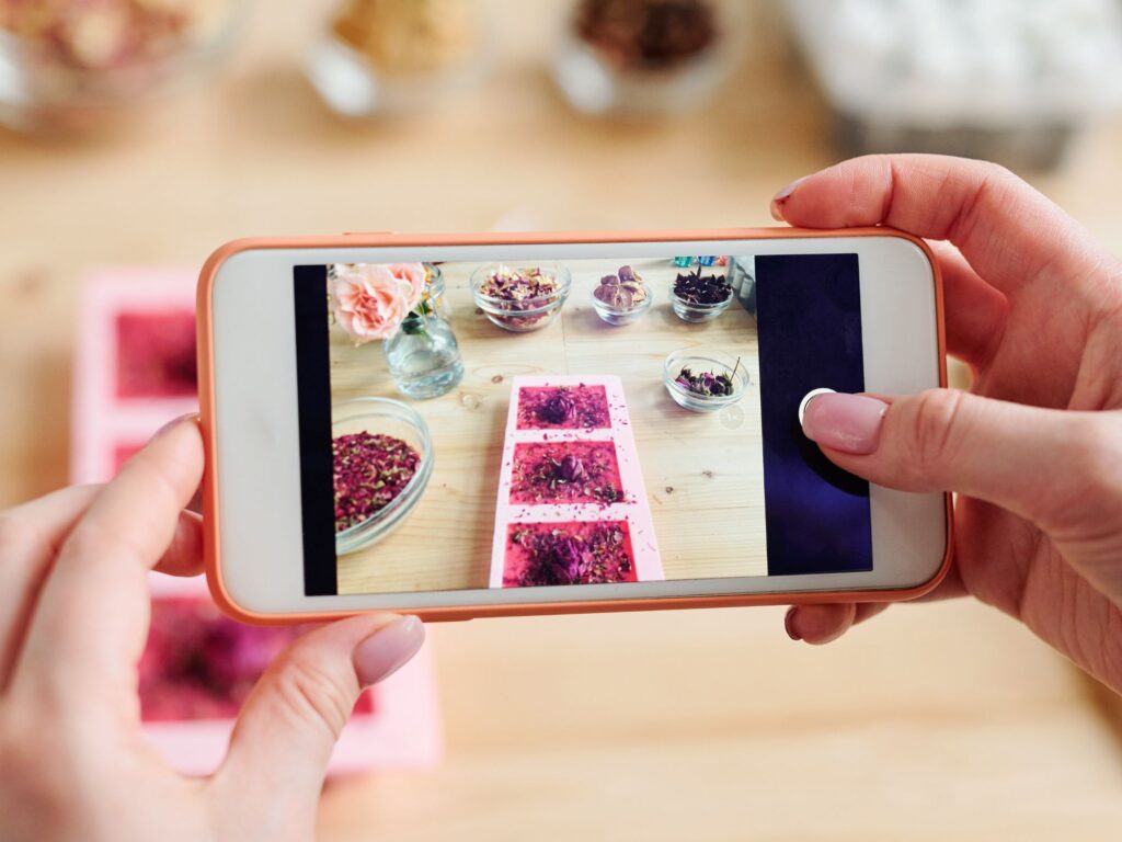 The best way to do this is by showing your products while they are actually being used. Demonstrate the benefits of your products and how they can assist in advancing the live’s of your customers. You can show how can you add your soaps to a skincare routine, or the benefits of the ingredients that you use to make them.